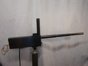 The Navy model, Type N, officially known as Device 3-A-8, Air Machine Gun, may have been the same as MacGlashan’s commercial model. It can be identified primarily by the slightly-tapered perforated barrel jacket that covers the rear two thirds of the barrel. This was purely cosmetic, since a compressed air gun is self-cooling by virtue of the expanding air during firing.