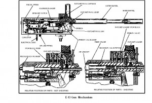 The E-3 resembled the Navy model externally, except that the perforated barrel jacket was absent, and a tubular extension was added to the muzzle.